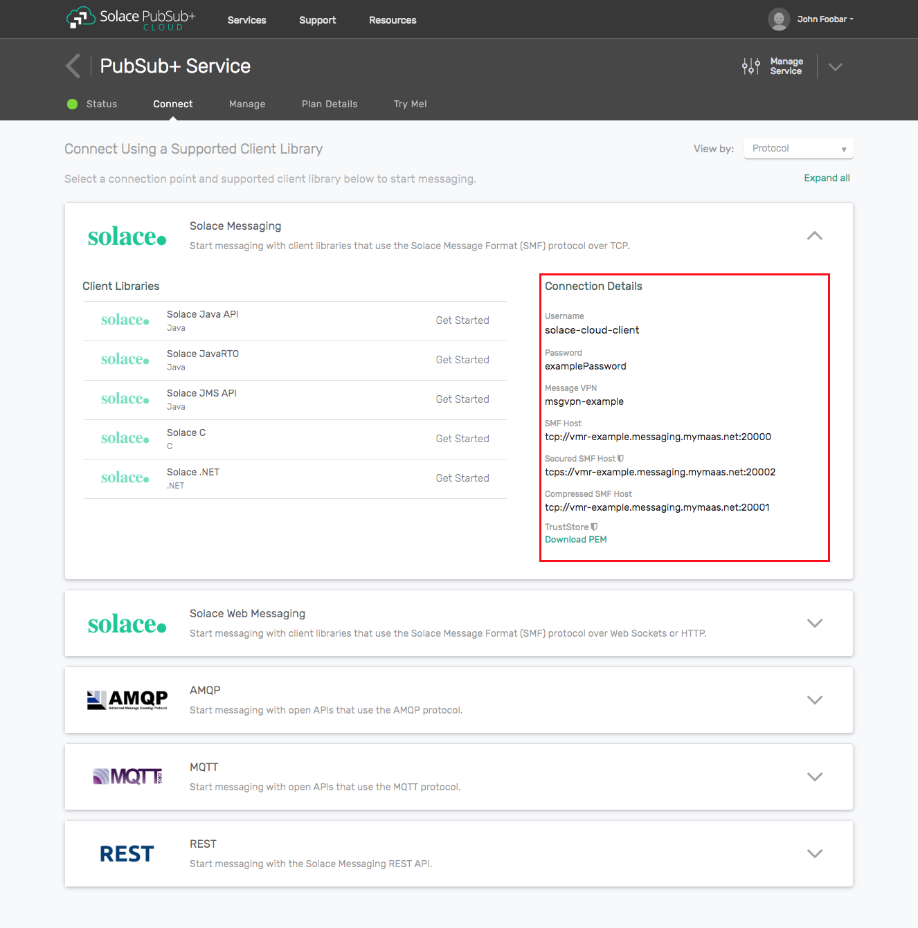 Solace Event Broker Host | Refer to section 2- Get Solace Messaging for values | |