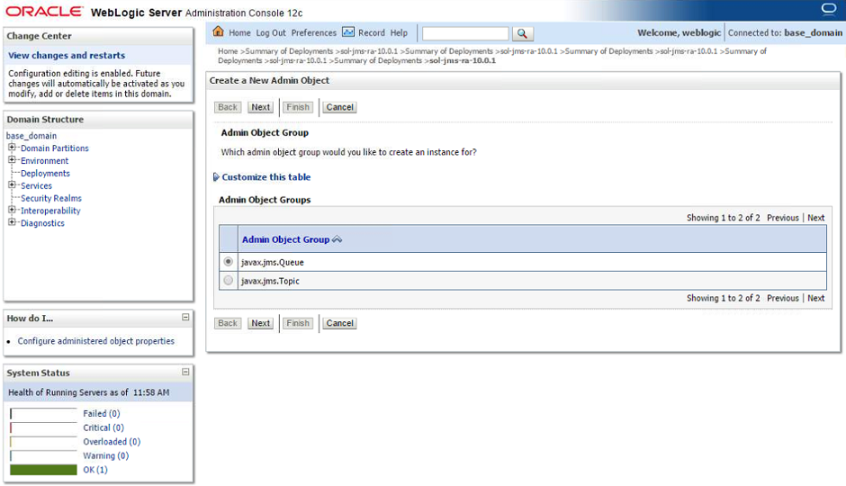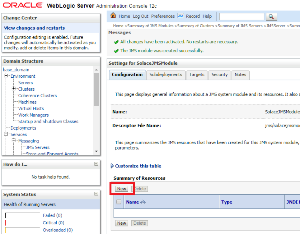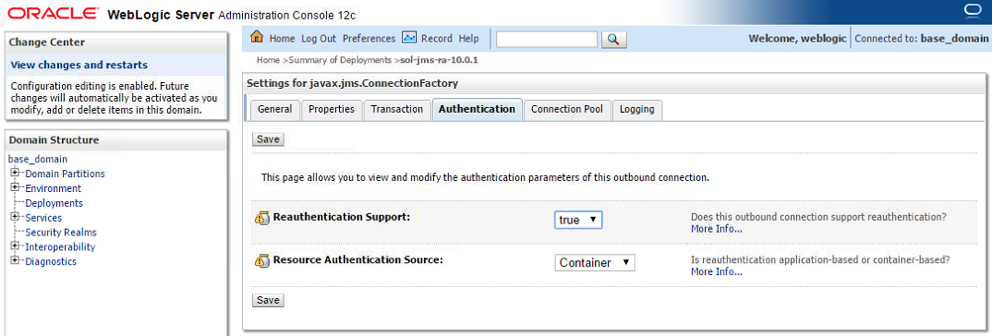 Note this document provides instructions on configuring and deploying the Solace JCA 1.5 resource adapter using the web console application of WebLogic, as well as instructions on configuring Solace as a Foreign JMS Provider Module. For detailed background on either Solace JMS or the WebLogic Application Server refer to the referenced documents below.
