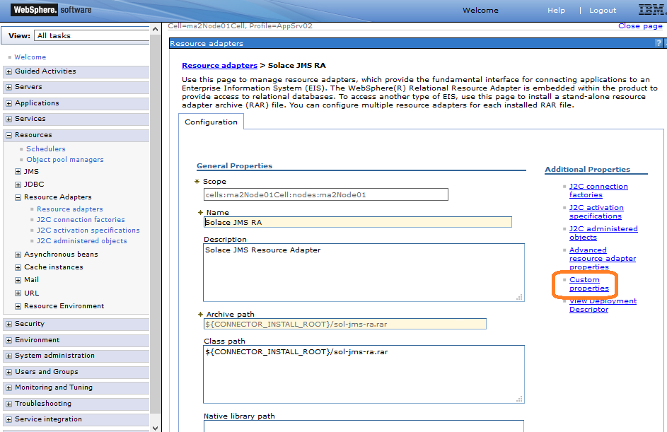 The target audience is developers using the WebSphere Application Server who have general knowledge of both it and JMS. This document focuses on the steps required to integrate the two, and provides instructions on configuring and deploying the Solace JCA 1.5 resource adapter using the web console application of WebSphere. For detailed information on either Solace JMS or the WebSphere Application Server, refer to the documents referenced below.